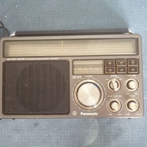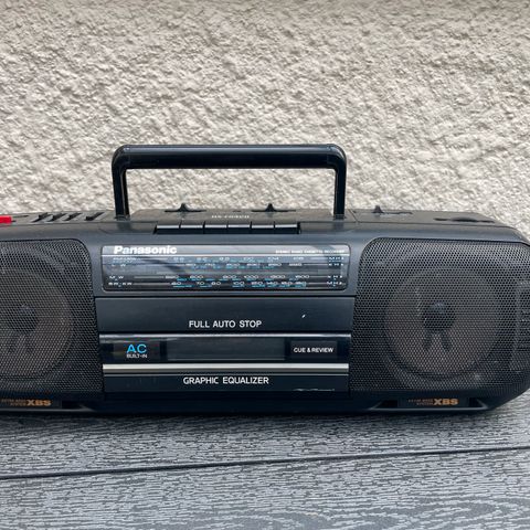 Panasonic radio med CD-afspiller og digitalt display. Enhed med indbyggede højttalere, drejeknap til betjening og digital tidsvisning. Velegnet til afspilning af radio og CD.