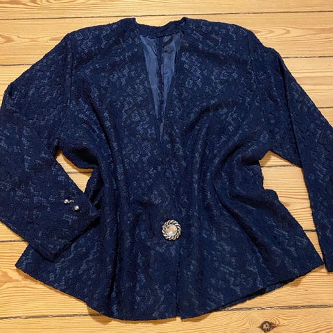 Den skal lige ha en nål/tråd på det ene ærme, men det er bare en lille bagatel. Den er i fin stand og virker ikke “kunstig” da der er lidt uld i