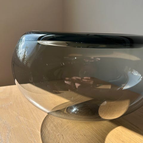 Vase, fad og skål i sart blå. Virkelig flot og stilrent, men vi savner plads herhjemme. Sælges samlet. Jeg kan godt sende, men kassen overholder ikke de mål, der kan købes automatisk gennem dba.