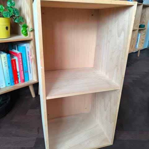 To fine reoler / bogkasser med hylder fra at-bo. Sælges pga pladsmangel. Dyben er 34,5 cm - det kan bare ikke indsættes i DBA