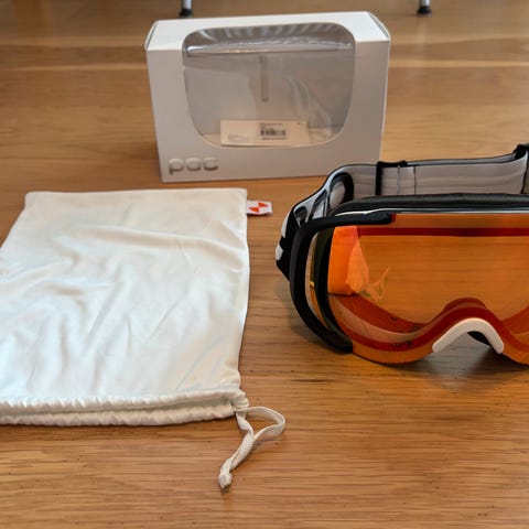 Julbo skibriller med orange linse/ spejl og justerbar elastik. Brillerne har skumforing. Enkelte små ridser i linsen.