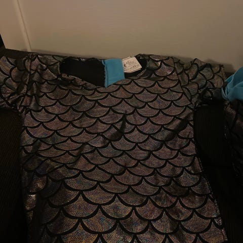 Havfruekappe fra Great Pretenders str. 5-6 år i lys lilla tyl med guldkanter og guld/lyseblå krave.