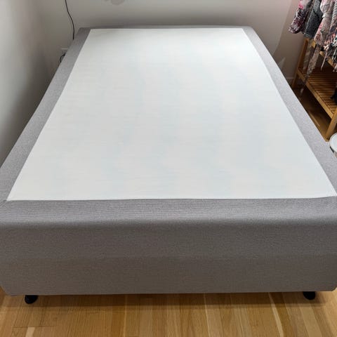 En anelse skæve sider i bredden, da toplag har forskudt sig, men støtter stadig som den skal. Kan formes på plads ved at vende den hyppigt, som anbefalet.