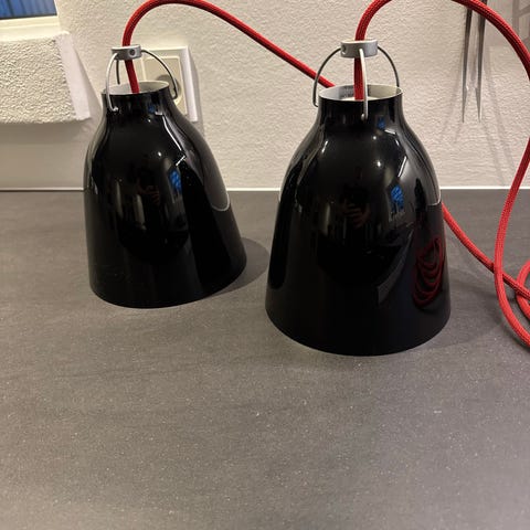 2 stk. Caravaggio Pendel sort/rød P1 - designet af Cecilie Manz for Fritz Hansen.
