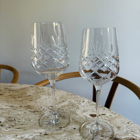 Krystalglas uden bly fra Frederik Bagger. 2 glas og en karaffel sælges samlet. Har aldrig været i brug. Koster samlet 1.549,90 fra ny og sælges her til 650,-