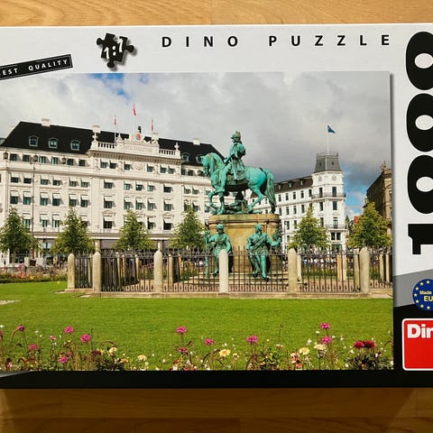 Dino 1000 brikker puslespil med motiv af København. Puslespillet består af 1000 brikker og viser et billede af en kendt bygning i København med grønne omgivelser.