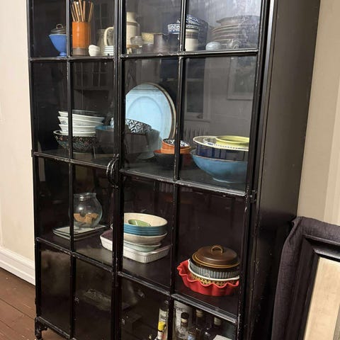Vitrineskab i sortlakeret jern og glas hylder/låger, hvilket giver det et både råt og charmerende udtryk. Kun 4 år gammelt, sælges pga renovering.