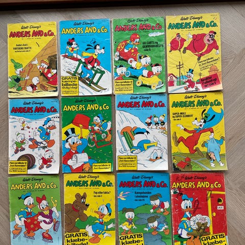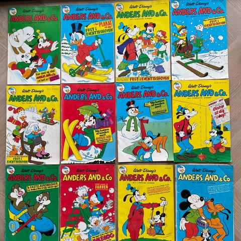 Walt Disney Anders And & Co. tegneserier med forskellige numre og udgaver. Serien indeholder klassiske Disney-figurer som Anders And, Rip, Rap og Rup samt Fedtmule. Tegneserierne er på dansk og inkluderer illustrationer og historier rettet mod børn og samlere.