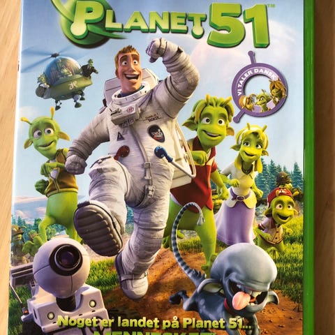 Planet 51 DVD med filmen Planet 51. Animationsfilm i eventyrkomediegenre om intergalaktiske rumvæsener. Sprog: Engelsk, dansk, svensk, finsk. Undertekster: Dansk. Lyd: Dolby Digital. Filmens varighed og yderligere tekniske specifikationer fremgår af DVD-omslaget. Dvd 1