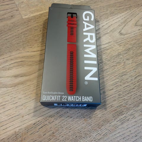 Remmen er aldrig brugt og fremstår som ny. Købt til Garmin Forerunner 955, men passer til mange Garmin-ure.