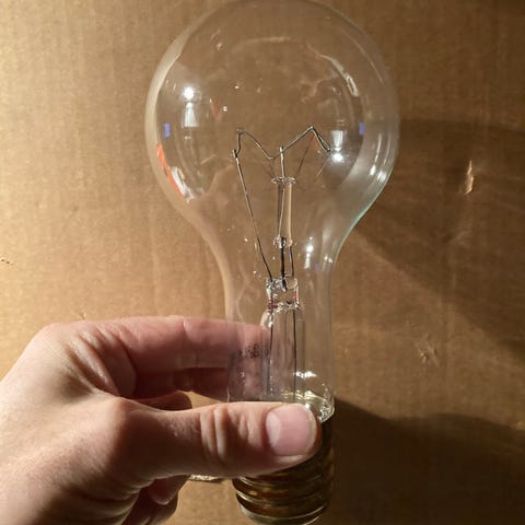 Stor glødepære med fatning. Kan dæmpes