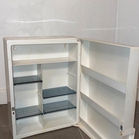 Vitrineskab, vægskab, toiletskab, toiletspejl, medicinskab, badeværelsesskab, metalskab, stålskab, retroskab, vintage skab, industriskab, glasskab, væghængt skab, opbevaring, badeværelsesinteriør, køkkenskab, spejlskab, rustfrit stål møbel, antik stil, dansk design, loppefund, boligindretning, stilrent skab, lille skab, entreskab.