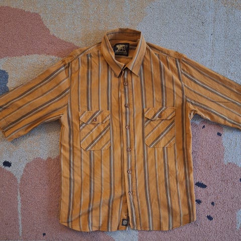 Garment dyed. Single stitch.