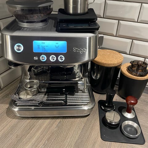 Vi ønsker at sælge vores nye Sage Pro Barista, da vi opgraderer. Den er som ny og der medfølger knockboks.