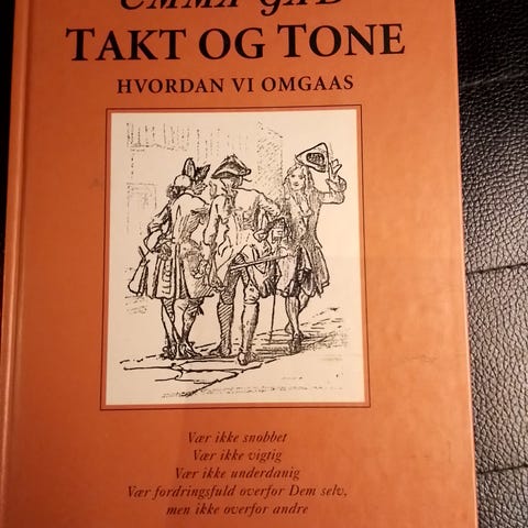 Emma Gad Takt og Tone bog med fokus på etikette og sociale normer. Bogen indeholder vejledning om opførsel og omgangsformer i forskellige sociale sammenhænge. Nordisk Forlag A/S 1994, 5. Oplag.