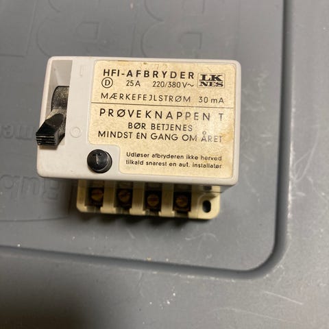 Sikringstavle med HFI-Afbryder samt 3 og 2 sikringsbokse med hoveder