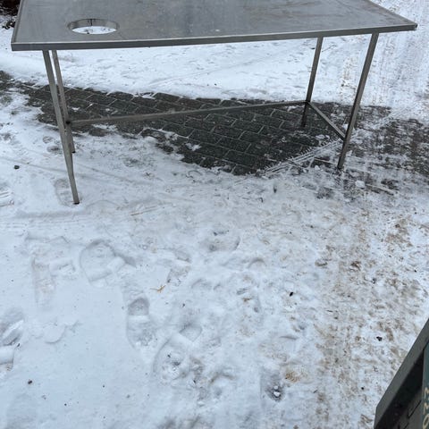 Stål bord er løst. Længde 148 cm dybde 60 cm centimeter højde 88 cm.