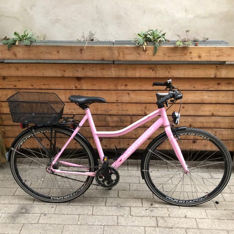 The bike is in has just been fully serviced and works perfectly. Come with 3 gears, front hand brake plus back pedal brake, bell, lights,basket, kickstand,reflectors, saddle and tires in good condition. Fits a person around 170/180 cm tall