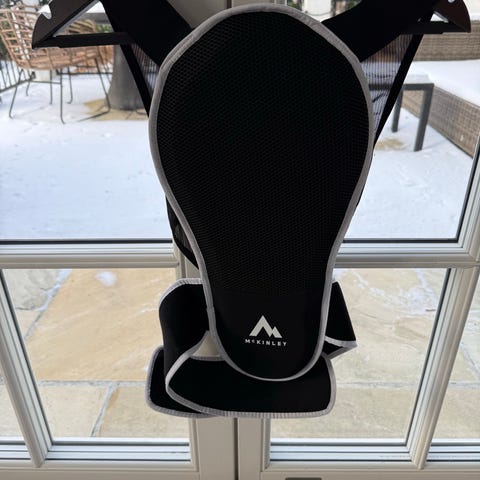 Scott Airflex rygskjold / beskyttelsesvest med integreret beskyttelse og lynlås foran. Den er designet til at give beskyttelse ved skiløb eller andre sportsgrene.