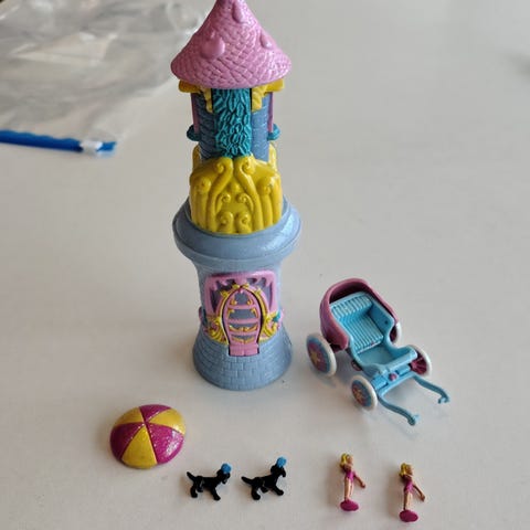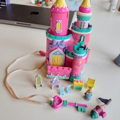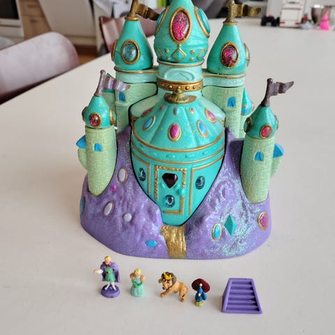 Gammelt slot fra trendmaster. Fra 1990erne og lig Polly Pocket. Den store blomst er knækket af og der mangler vidst lidt figurer.