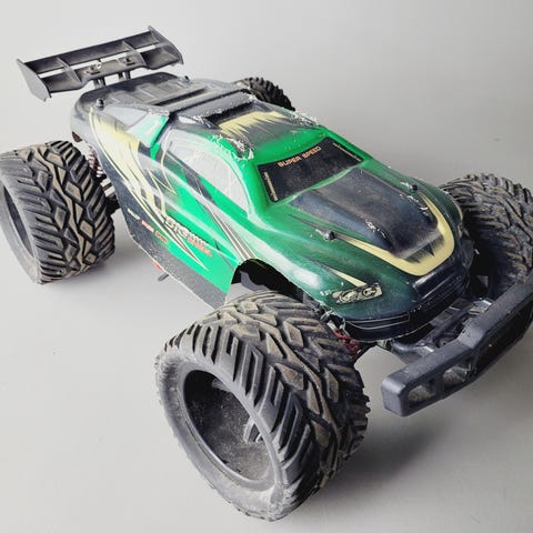 Fra 6 år. Bilen bruger 8x AA batterier. Fjernbetjeningen bruger 3 x AAA-batterier (medfølger ikke).