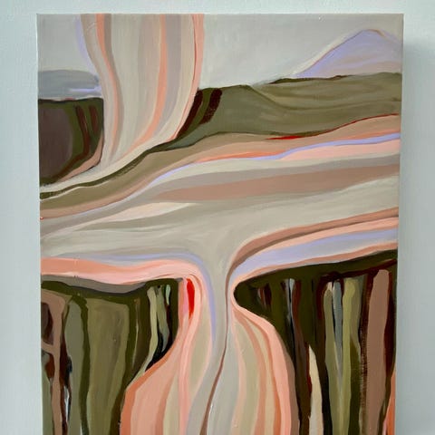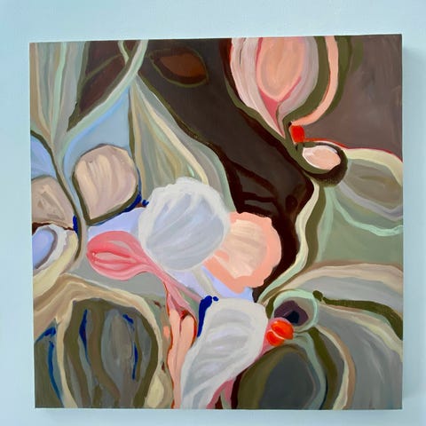 Original unika værk af den danske kunstner Gitte Valentiner-Branth. Akryl og mixed media på lærred. Maleriet har abstrakt motiv og farverig komposition over temaet bæredygtighed, klima og miljø.