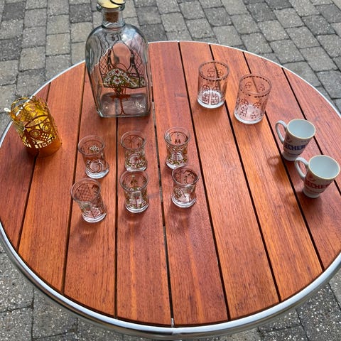 Sælger en smuk og velholdt samling af Holmegaard juleflasker og 6 dramglas (har fire mere end dem på billedet)