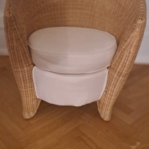 Stolen er lavet af håndflettet rotting, som er et levende materiale, der gør alle lænestole unikke. Luftig, holdbar og giver dig en følelse af at blive omfavnet, så den er perfekt at hygge sig i.