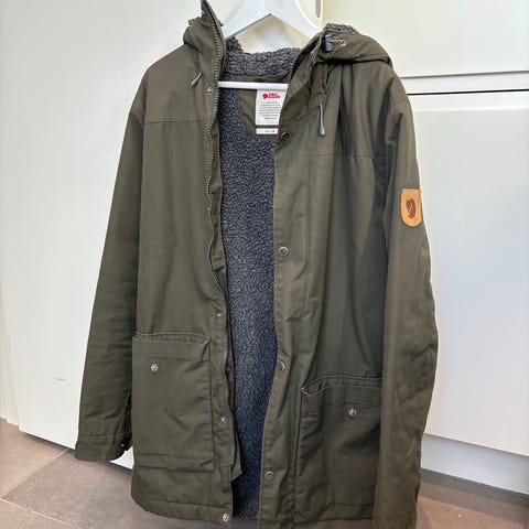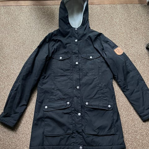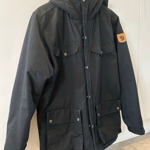 Fjällräven vinterjakke i sort farve, størrelse S til herre. Jakken er fremstillet i polyamid materiale, velegnet til udendørs brug i kolde vinterforhold.