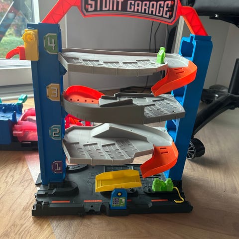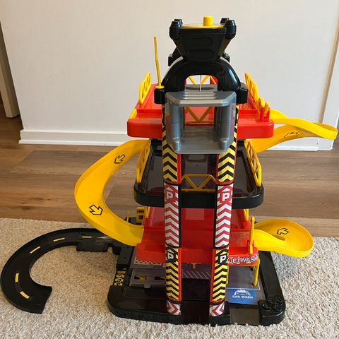 Tower Garage - med 4 etager, spiralrampe, elevator og masser af plads til små biler.