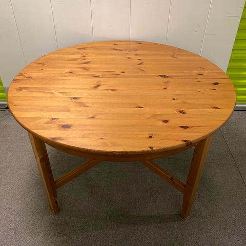 Super fint rundt spisebord i massivt fyrretræ og uden store knaster.