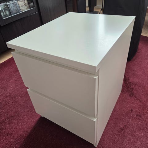 Hvidt, metal sengebord fra Ikea med en skuffe. Lidt brugsspor (se billeder)