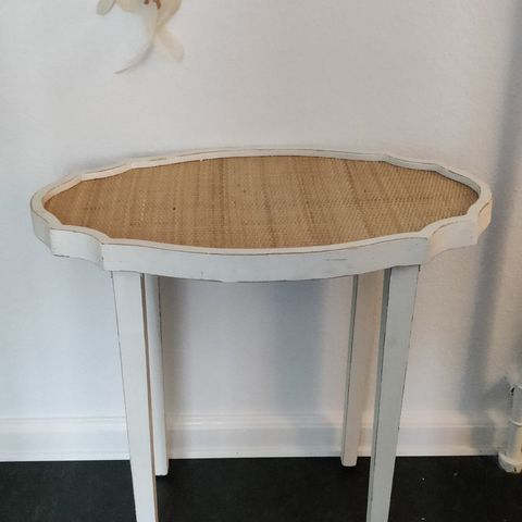 Konsolbord, der sammenklappet ikke fylder meget, men udklappet er brugt som skrive-/sybord.