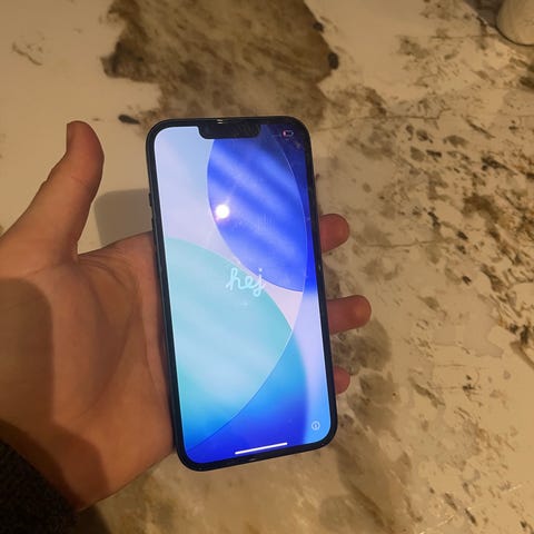 Apple iPhone 13 i sort med 128 GB lagerplads og god batterikapacitet på hele 86%. Har de næsten uundgåelige brugsspor på kant og skærm, men skærmen er helt uden flænger og revner.