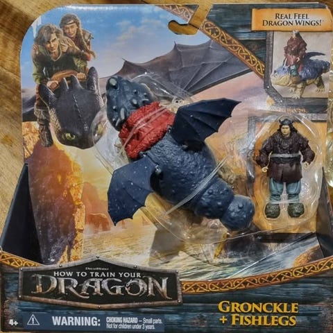Drage fra ‘Sådan træner du din drage’. Fremstillet i plastik med detaljer i blå, grå og sort. Legetøjet har bevægelige kæber og aftagelige dele, herunder en beskyttelsesmaske til hovedet.