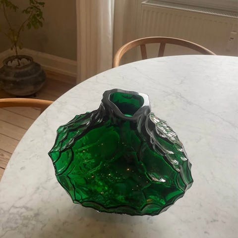 Organisk vase i gul glas fra Hein Studio købt i Stilleben.