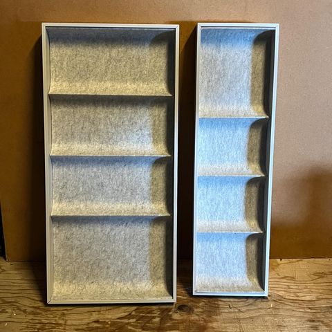 Praktisk opbevaringsystem, der bl.a. passer ind i garderobeskabe. 6 skuffer i hver. Står som nye. Kan skilles ad.