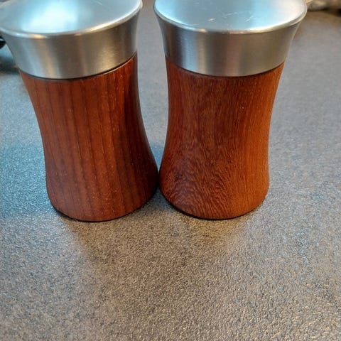 Et fint sæt salt og peber med holder teaktræ fungere fint