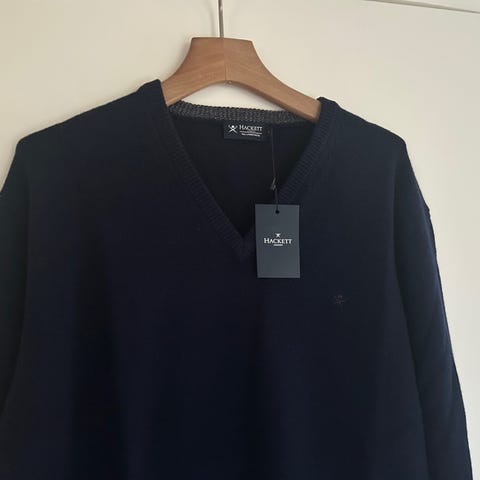 Sælger denne lækre Hackett London Dandy Harry sweater, da jeg desværre ikke får den brugt. En klassisk og stilren strik i høj kvalitet med unikke detaljer. Designet er med rund hals, røde albue-lapper og subtilt jacquard-hundemotiv foran. Perfekt til både hverdag og weekend!