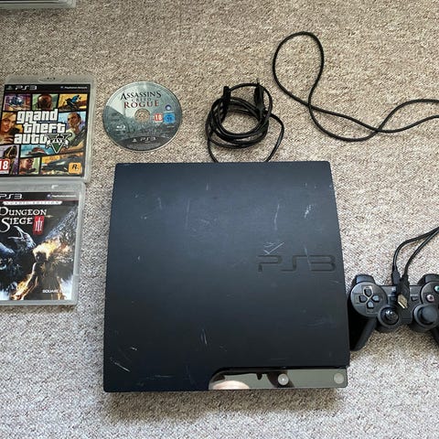 Sony Playstation 3 spillekonsol 320 GB sort, og 3 spil.