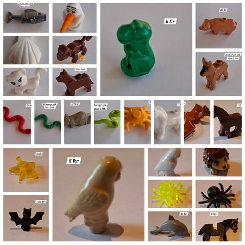 Masser af blandet lego dyr både.... hajer fra pirat, slanger, hunde, og en masse andre dyr.