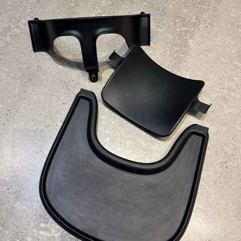 Stokke Højstol baby indsats og bakke i sort farve. Passer til Stokke højstol og bruges som bordplade for barnet. Fremstillet i holdbart materiale for nem rengøring og funktionel brug.
