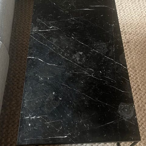 Et fint sort marmorlignende bord. Målene er 50x100 cm. og så 45 cm. i højden. Det sælges, da vi skal flytte, og har umiddelbart ikke nogen brugsspor. Kan hentes i Sydhavn fra 1. februar