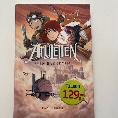 Kazu Kibuishi Amulet tegneserie bøger bestående af 'I Stenens Vogter' og 'Stenvogterens Forbandelse'. Serien foregår i en fantasifuld og farlig verden med elementer som gamle huse, robotter og mystiske kræfter. Bøgerne følger karaktererne Navin og Emily Hayes på deres eventyr gennem denne verden.