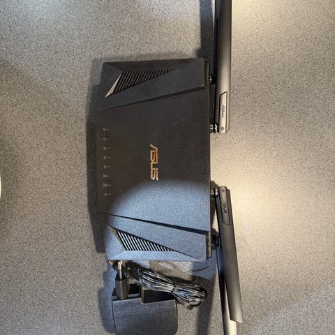 Sælger denne pålidelige Asus router (RT-AC68U). Den giver rigtig god dækning og er perfekt til både gaming og 4K-streaming.