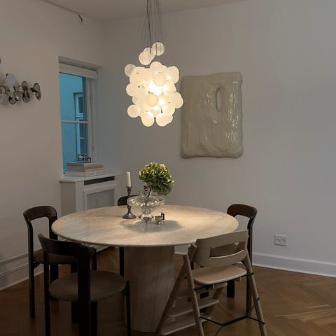 Travertin spisebord med trekantede bordben