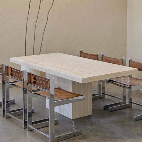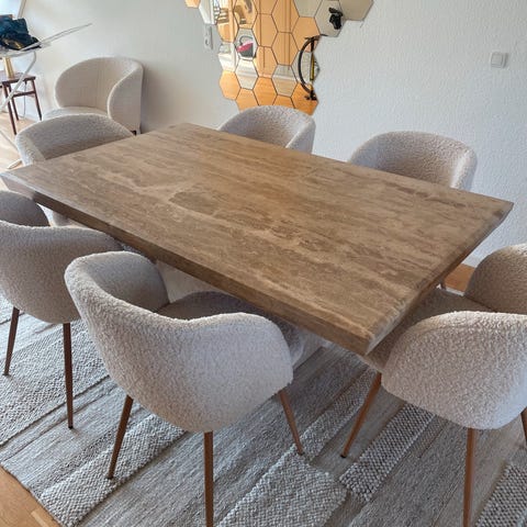 Fantastisk travertin spisebord med smukkeste trekantede bordben.
