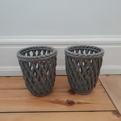 Bahne Circle urtepotteskjuler. 16 cm høj. Diameter 18 cm. Er som ny og kan ikke længere købes. Ved køb følger Bahne vase med gratis. 20 cm høj og ligeledes fin. Sender med Dao