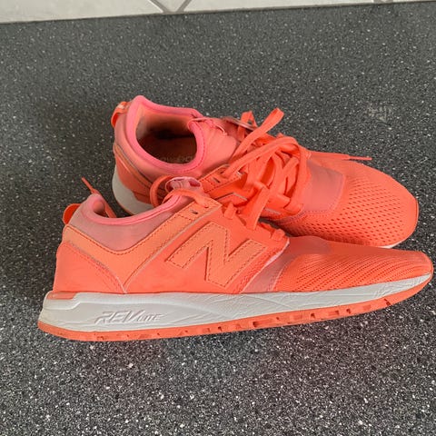 New Balance sko, brugt en gang. Farven på mærker er Bordeaux/lilla.