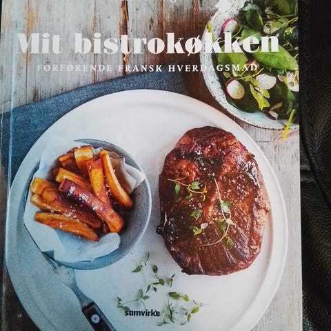Stéphane Reynaud Bistro kogebog med traditionelle franske opskrifter. Indeholder en række opskrifter og billeder relateret til fransk bistro madlavning. Bogens ryg er rød med teksten 'Bistro'.